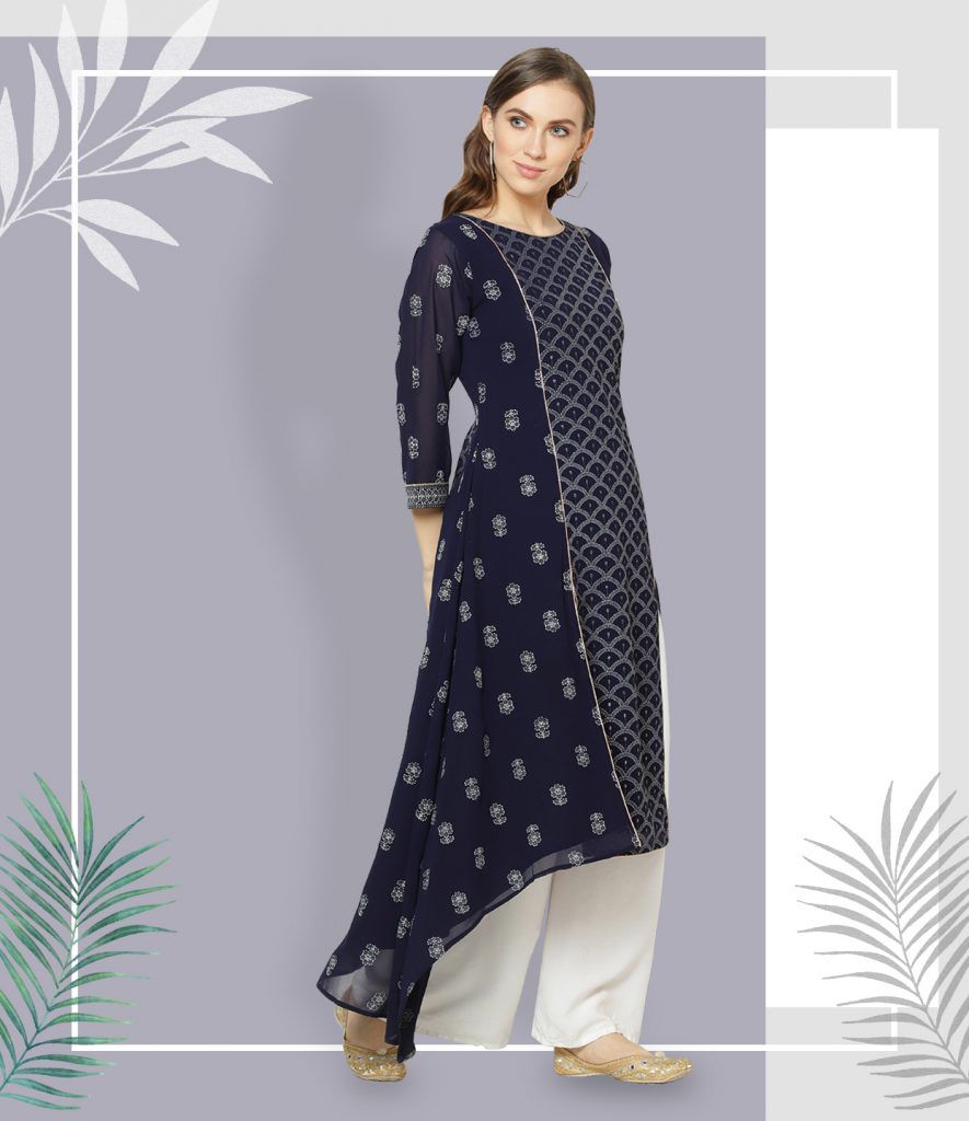 It is an example of the ever-changing trends in Indian ethnic wear keeping in mind global fashion. In addition to the traditional silks, cotton, synthetic fabrics are being combined lately.