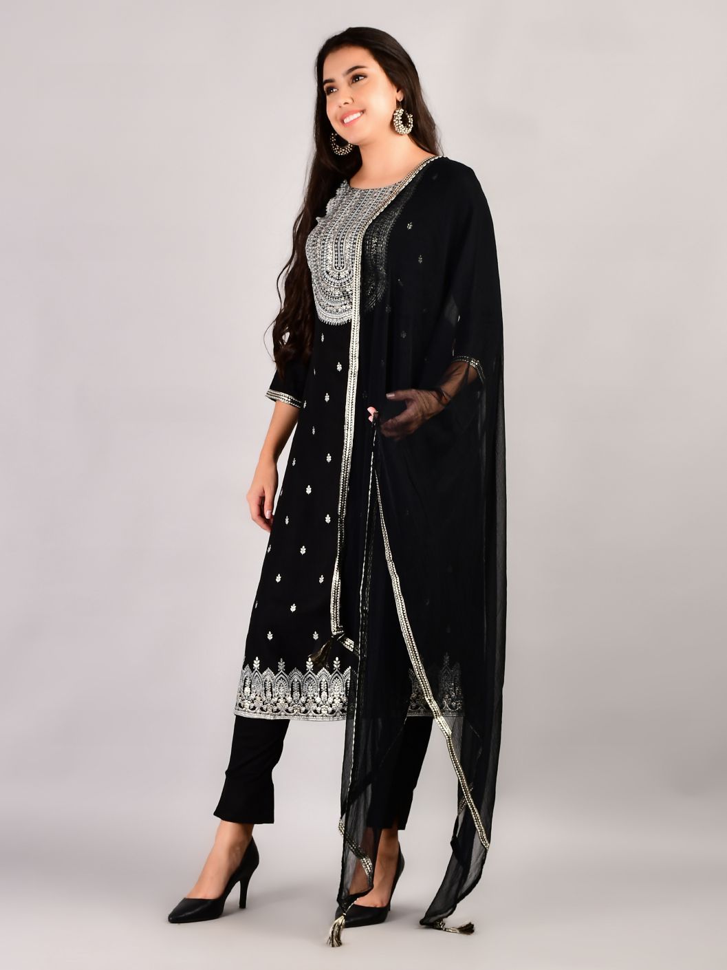 The Havyaa Kurta Set is an outfit that mainly originated in Punjab. The bottoms, known as salwar, pants, or palazzo are similar to a loose pajama or pants and the top, which is known as a Kurta is a tunic style top. The outfit is generally paired with a chunni or dupatta which is similar to a headscarf. Made with a wide range of fabrics, and featuring a plethora of different prints and motifs, the Havyaa Kurta Set as an ethnic outfit is high on style as well as comfort and convenience.